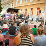 Wie die Verschmelzung von Wissensweitergabe, Information und Produktion von neuem Wissen ablief, hätten wir uns für diesen BAM!stag nicht besser vorstellen können. Und trotzdem muss irgendwann Schluss sein. Es freute uns, vom spannenden und vollgepackten Nachmittag mit dem Beschwerdechor in das Abendprogramm überzugehen. Besser hätte es nicht zusammenpassen können: der Wiener Beschwerdechor, der in diesen lieblichen Sommerabend hineinspielt und uns alle da abholt, wo wir gestartet sind – sich mehr zu beschweren! Der zwischen Performance, Chor und musikalischer Einlage wechselnde Auftritt verzauberte den Platz und konnte nur noch von EsRAPs Gastbeitrag überboten werden. Diese musikalische Symbiose als geballter Power, BAM!stagabend in Ottakring. EsRAPs Show fungierte als eine schöne, ruhige Ergänzung zu ihrer am Freitag auf dem Yppenplatz stattgefundenen »Tschuschistan«-Album -Release-Party: Nach der geballten Power ging es mit der Singer-Songwriterin Laura Rafetseder ruhig weiter, die Leute kamen zusammen, es wurde sich unterhalten, mittlerweile lief der Bar- und Essensbetrieb auf Hochtouren. Die lustig-freundliche Bedienung vom Volx*Club konnte gut und humorvoll mit dem Andrang umgehen und so wurde der Abend durchzogen von einer Stimmung, die vom Namen des Platzes fast schon heraufbeschworen wurde.