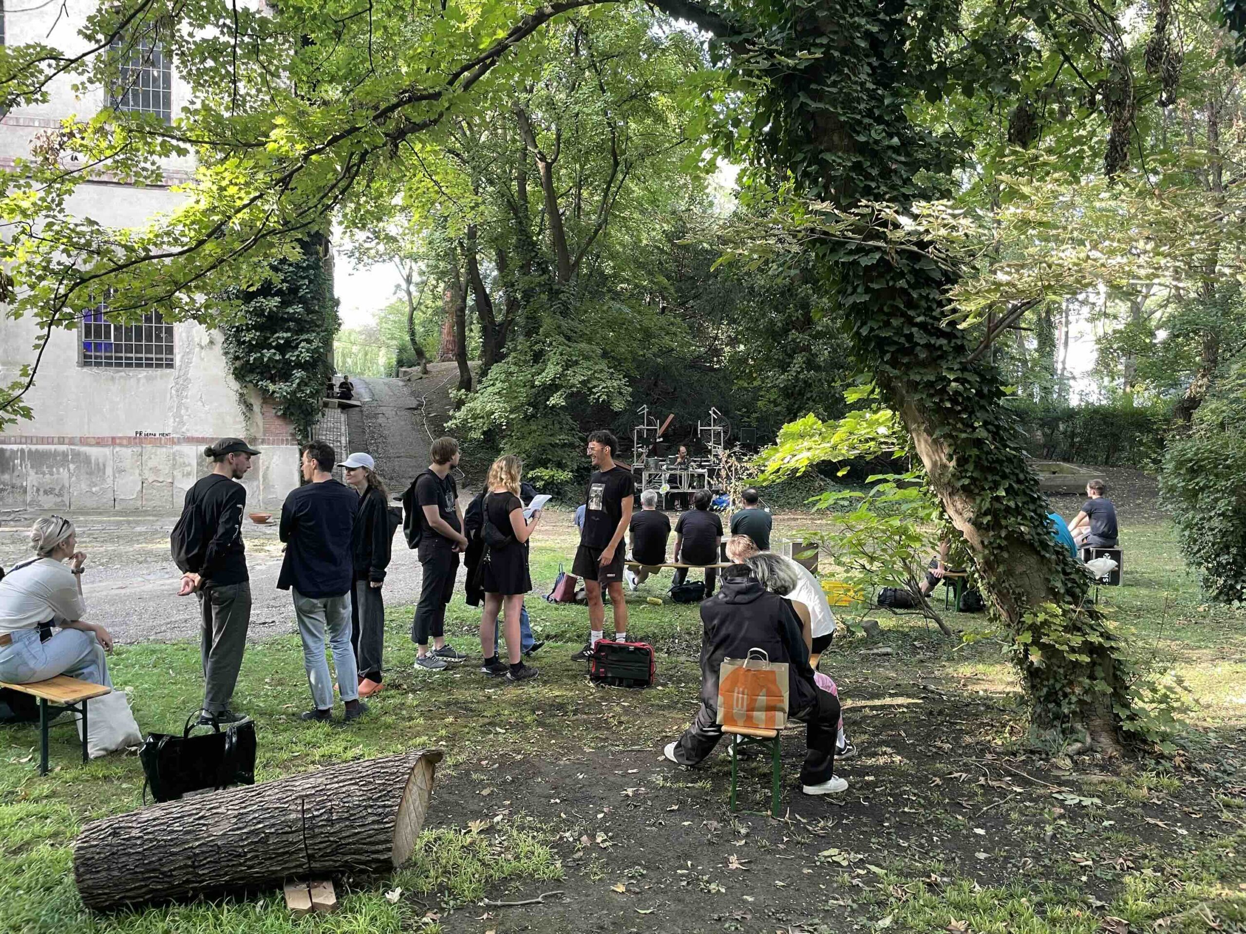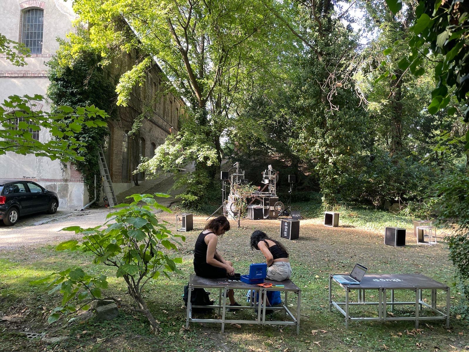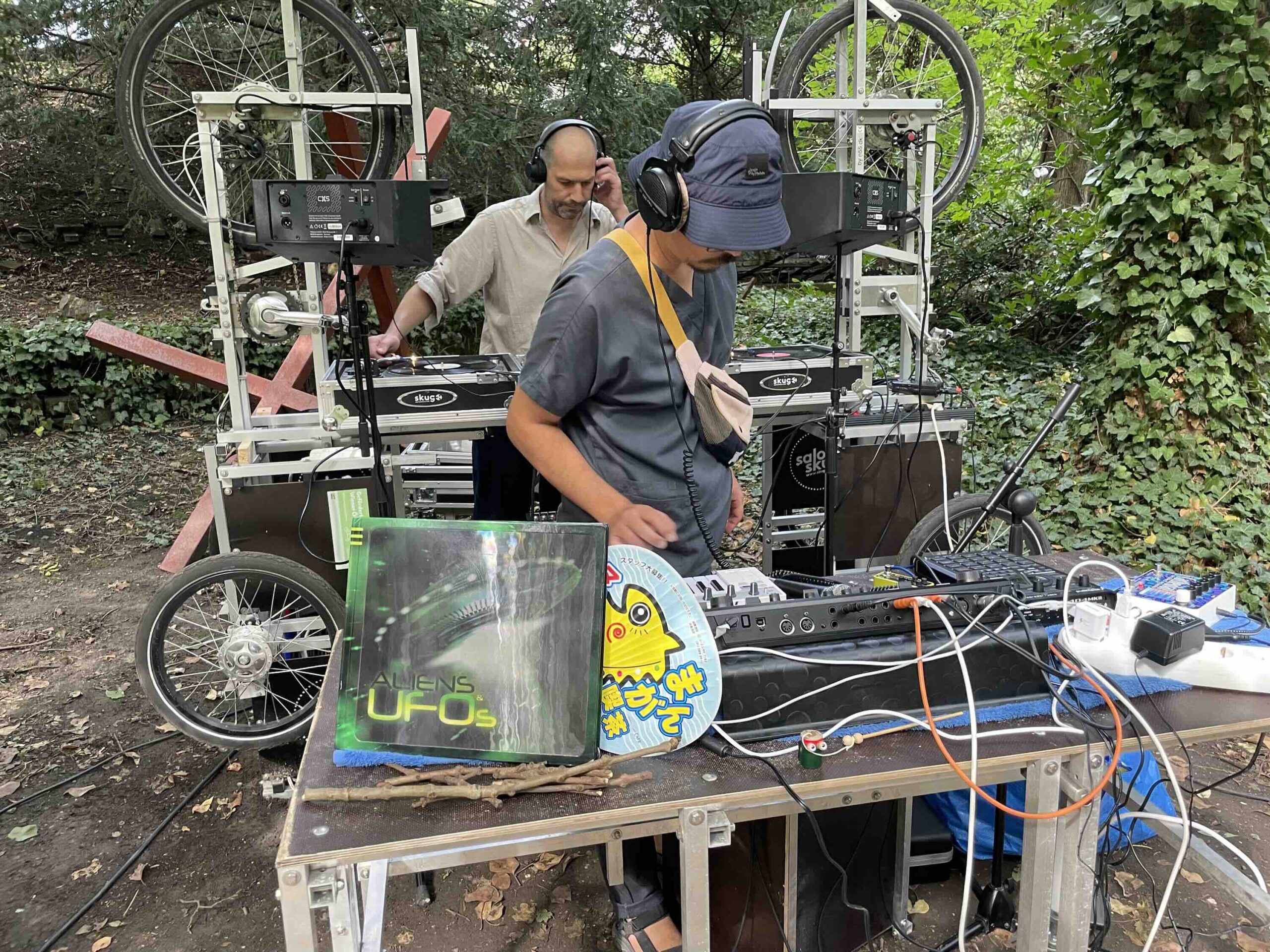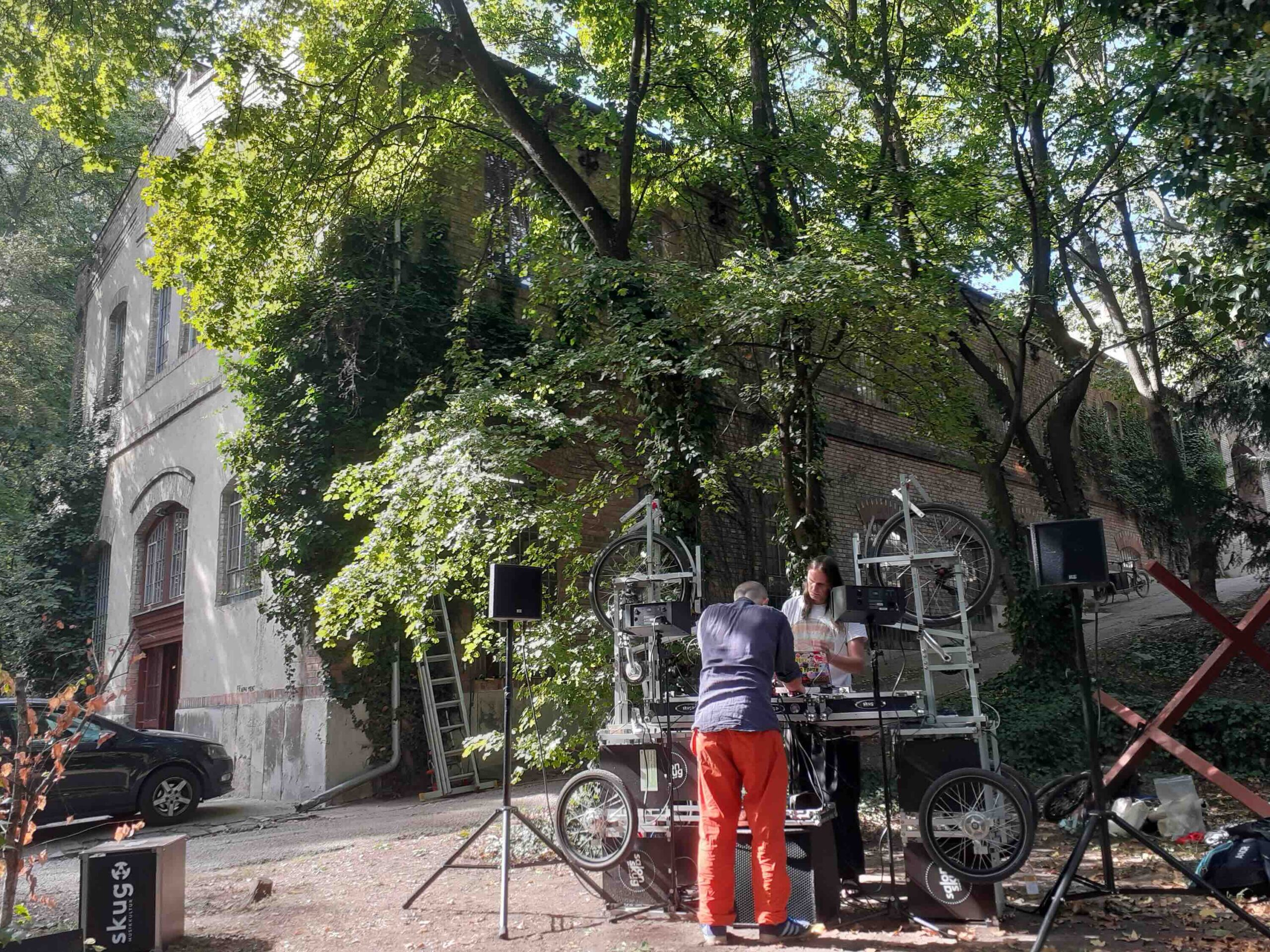 skug wollte sich das natürlich nicht entgehen lassen. Als uns die ehemalige skug-Autorin Shilla fragte, ob wir kooperieren wollen, mussten wir nicht lange überlegen. »Einen Salon-skug-Export in der Zacherlfabrik? Yes, please!« Bei der Eventlocation handelt es sich um ein wunderschönes Fabriksgelände mitten im 19. Wiener Gemeindebezirk. Ab 1870 ließ der Industrielle Johann Zacherl dort Insektizide herstellen. Die Idee hatte er aus Tiflis. Inspiriert davon wurde das Gebäude im orientalistischen Stil errichtet. Nachdem es jahrzehntelang leer stand, bietet es heute einen Raum für Kunstprojekte. Im schattigen Garten stellten wir unsere Räder auf. Zwei Tage Nachmittagsprogramm, zwei Tage Erstaunliches im öffentlichen Raum hörbar machen.
