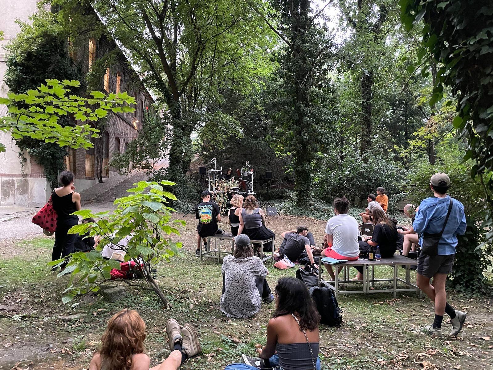 Den Auftakt bot das DJ-Set von Seba Kayan. Genussvoll erschüttert sie das westliche Selbstverständnis, selbstverständlich das Maß aller Dinge zu sein. Dafür greift die Künstlerin auf »orientalische« Einflüsse zurück. Am 26. Oktober 2023 wird sie im Fluc ein ambitioniertes Programm kuratieren. Workshops, Konzerte und Auflegerei fordern eine Neuausrichtung unseres Selbstverständnisses. Ihr Set im Salon zeigte jedoch, dass dies (auch) ein freudvoller Prozess ist. Seba legte Techno mit anatolischen und arabischen Einflüssen auf. Wer gerne den Tag zur Nacht macht, kann auch im Garten tanzen.