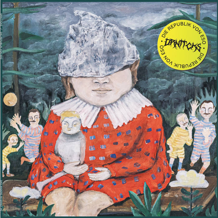 Mit Blick auf die Selbst- und Fremdwahrnehmung ist die Abweichung die Norm. Sähe man sich mit den Augen der anderen, es kämen einem mitunter die Tränen; ob aus Freude oder Kummer, das sei dahingestellt. Das Nürnberger Duo DRNTTCKS diagnostiziert im digitalen Waschzettel zur Veröffentlichung den »Aufstieg rechter Esoterik«, um »mit dem Album und Konzerten vor der neoliberalen Zustandsverwaltungspolitik der SPD und dem fossilen Faschismus eines Friedrich Merz [zu] warnen«. Die beiden Eierköpfe finden sich auch auf dem Back-Cover von »Die Republik von Eso« und vorne drauf sitzt, ästhetisch an die Malerei von Otto Dix angelehnt, eine Aluhutträger*in. Ob dieser Rahmung und der garstig anmutenden Oberflächenästhetik könnte man jetzt meinen, das Duo spiele Crust-Punk oder Harsh-Noise und zöge zornig republikweit durch besetzte Häuser und über Bauwagenplätze. Dem ist aber nicht so. Nicht mal im Ansatz. Die Musik der beiden entspricht überhaupt nicht den zitierten rhetorischen Phrasen und die so eingenommenen pessimistischen und finsteren Posen stehen ihnen nicht und wirken abschreckend. Denn Rhetorik hin, Ästhetik her, was das Duo musikalisch präsentiert, ist eigentlich ganz schön. Unter Einbringung einer Vielzahl elektronischer Elemente und der spärlichen Verwendung üblicher Instrumente (Gitarre, Klarinette etc.) fabrizieren DRNTTCKs eine instrumentale Mischung aus Post-Punk, Post-Rock und Post-Indie-Electronica, Musik, die zwischen Sehnsuchtsorten wie Leeds (1977, Gang of Four), Chicago (1996, Tortoise) und Landsberg (1991–2007, Hausmusik) hin und her pendelt und in ihrer milde experimentellen Ausdrucksweise weder nervt noch provoziert. Und das ist gar nicht schlimm! Im Gegenteil. Die Aufmachung der Veröffentlichung entpuppt sich in dieser Hinsicht als Mogelpackung, die ätzenden symbolischen Gesten und rhetorischen Figuren finden in der Musik keine Entsprechung. Warum, frage ich mich, hat sich die Band das in dieser Weise ausgedacht und sich damit aus meiner Sicht ein Bein gestellt? These: Die abweisende Präsentation ist Ausdruck des schlechten Gewissens zweier Menschen, die als Freizeit-Musiker im Proberaum einen Zufluchtsort finden, einen Unterschlupf zur Regeneration – dafür muss man sich nicht schämen oder zur Legitimation schwere Geschütze auffahren. Selbstsorge ist okay, und die so entstandenen, freundlich gestimmten, an elektronischen Krautrock erinnernden Kompositionen können sich hören lassen: Nach Feierabend oder am Wochenende, wenn man wieder einen Tag oder eine Woche unter der bereits zitierten »neoliberalen Zustandsverwaltungspolitik« überstanden hat. So viel Leiden an der Gegenwart mag die Musik spiegeln, aber durch die Ausführung doch eher wie Balsam für die Seele wirken. Ein Hype-Sticker auf dem Album hätte genügt: »Kann Spuren von Gesellschaftskritik enthalten!« Um es noch einmal deutlich zu sagen: Die zugänglich-verspielte experimentell-elektronische Musik der im Eigenverlag herausgegebenen Vinyl-Veröffentlichung könnte sicher eher ein Publikum finden, wäre sie nicht von unnötigem semantischem Stacheldraht umzäunt. Das ist bedauerlich, aber vielleicht findet das Album ja noch hier und da trotzdem Gehör.