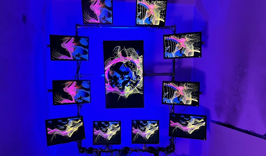 Alle im MUMOK ausgestellten Arbeiten wurden noch von der Künstlerin selbst zusammengestellt, bevor sie 2020 verstarb. Nur die Hintergrundfarben bestimmten die Kurator*innen selber und lehnten sich farblich an andere Wild-Ausstellungen an. Die Schau im MUMOK ist daher die letzte von Elisabeth Wild selbst autorisierte Fassung. »Fantasias« nannte sie ihre tagebuchartigen Klebereien, die oftmals runde Objekte enthalten. Planeten, Köpfe, Fluchtpunkte? Mysteriöse Räume, Hohlräume? Eine ganz eigene Welt. Manchmal sieht man ein einsames Häuschen im leeren Weltraum. In dem Film »Vivians Garden« von Rosalind Nahashibi (2017) sieht man das liebevolle Zusammenleben der beiden Künstlerinnen. »I cherish every moment with my mother«, meint Vivian Suter, die mit hoher Kleinmädchenstimme redet und viel lacht. Man sieht die Tochter beim flotten Rollstuhlschieben durch den Urwald, so dass es der Mutter die Haare zurückweht, beim gemeinsamen Aussuchen von Kleidung für eine Reise, in Zuneigung zu ihren Hunden. Die Mutter redet eindeutig noch wienerisch, die Tochter mit schweizerischem Klang. Die traurig tröstliche Musik des Films hallt durch die ganze Ausstellung und verbreitet einen melancholischen Grundton – auf eine sehr schöne Art einen Klang, der sich den Mysterien der Welt annähert.