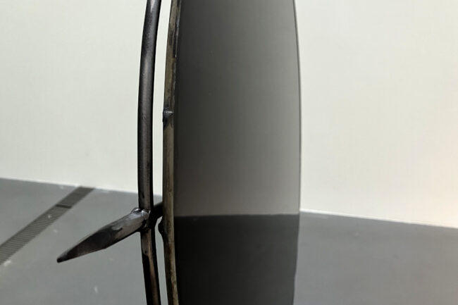 In Kateryna Aliinyks Bild, das einer brutal zerstörten Waldlandschaft eine Bühne bietet und dessen Acrylfarben auf dem geklebten Paper sinnbildlich zerrinnen, stellt die aus Luhansk stammende Künstlerin herausfordernd fest: »What the Heroine Wants Is The Main Question« – und stellt damit die Machtstrukturen kurzerhand auf den Kopf. Einen Kontrast dazu bieten Daria Koltsovas dornige Sonnenblumen aus schwarzem Glas und Metall, die als »Witnesses« das Unrecht und die Zerstörung dieses Kriegs bezeugen. Es ist unbestritten ein düsterer Blick auf die Ukraine, den die Kurator*innen Serge Klymko und Sarah Jones mit »Vertical Horizon« für die Kyiv Biennale 2025 im Lentos Linz zusammengestellt haben. Zugleich beeindruckt aber auch die aus minimalen Mitteln schöpfende Kreativität der teilnehmenden Künstler*innen, welche mit Hoffnung und dem Wissen um Gerechtigkeit anzustecken vermag.
