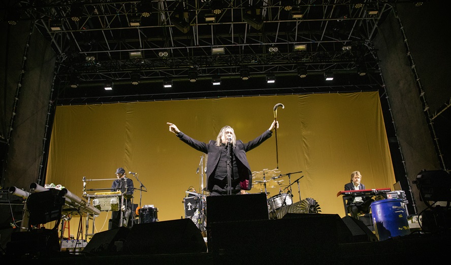 Whow, da sind doch »Pussy Riots« auf der Bühne: Die Schlagzeugerin trägt eine grüne Haube über das Gesicht gezogen, die Synthie-Spielerin hat sich in ihre blaue durchsichtige Haube riesige Löcher für Augen, Nase und Mund geschnitten, die Bassistin mit dicker roter Wollhaube über dem Kopf scheint hingegen null Sehschlitze zu haben. »Wir sind Schabka!«, brüllt eine und reckt die Faust. Ein Baby schreit aus dem Publikum, es klingt belustigt. Düdeldü macht die Orgel, ein wolkiger Synthie-Beginn. »Adin! Dva! Tri! Cetirje!« und los geht’s! Tiefe Stimme, das klingt super, sehr basslastig die Nummer, hoher, schriller Synthie dazu, Russisch! Die Schabkas schlagen sich durch mit dem Rhythmus, wälzen sich kräftig vorwärts, Gegröle im Publikum. Die mit der Wollhaube sieht sicher nix. »Da! Hocemo Sloboda!«, schreit die 17-jährige Sängerin, es klingt gut, bisschen viel Griffe auf der Gitarre für eine Punk Band … Da ich nicht russisch kann, verstehe ich »Wir wollen Freiheit!« – das wäre die slowenische ?bersetzung. Die sind super für fünf Tage Unterricht bitte. Schlagzeug, Becken, Krach und Schluss. Die haben alle lange Haare unter ihren Hauben. Das nächste Lied der Mädchenbande, »Wir sind müde« auf Deutsch, ist dann ganz anders gestaltet. Und das dritte Lied erst, noch mal völlig anders: »Um euch kurz auf das Lied mit den Küchenschaben vorzubereiten. Dazu gibt es einen Tanz. Streckt die Hände nach vorne, stark verkrampfen (macht es vor), als dritten Schritt macht ihr die seltsamsten Bewegungen, die euch gerade einfallen.« Pling plong pling macht der Synthie, die jungen Frauen lächeln sich an und los geht’s. Die hohe Stimme der Rapperin rappt sich weg. Pause. »Eigentlich bin ich durstig«, sagt eine und trinkt aus einer Flasche, »geht’s wieder, ganz genau« und weiter Rap. »Das coole Mädchen mit der Brille. Stille«. Und Stille und weiter geht’s. Wer mit wem was hat, wird aufgezählt, während die zweite ihre Kommentare mit »Kacke« und »Scheiße« dazu rappt und ins Publikum lächelt. »Die Liebe ist manchmal wie ein schwarzes Loch. Küchenschaben yeah.« Die halten durch. »Wir spielen keine Covers, sondern wir haben unsere vier eigenen Lieder geschrieben«, stellt eine am Ende fest und reckt stolz ihre Nase in die Luft. »Riot! Riot! Riot! Riooooooot!«