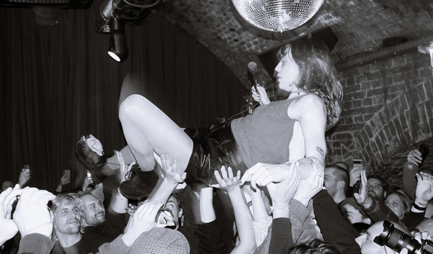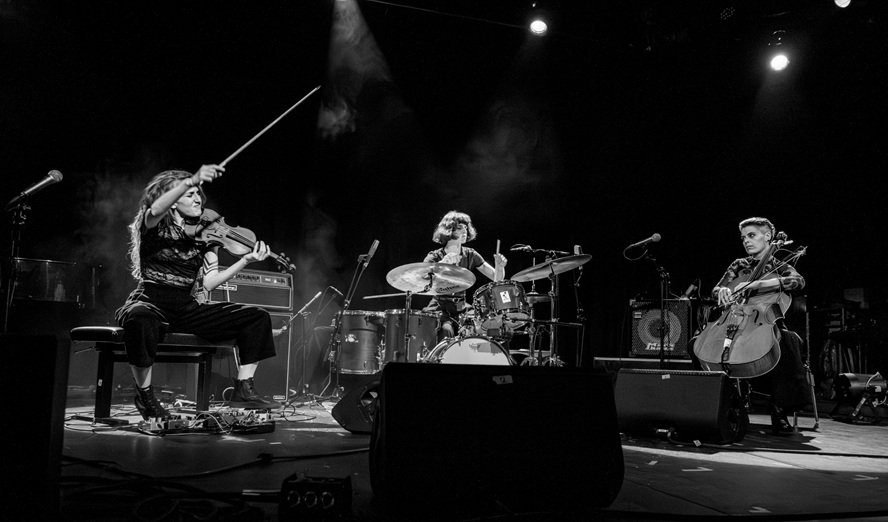 Wie ein Springteufelchen hüpft eine Kleine hinter dem Schlagzeug hervor und winkt und redet gleichzeitig. Wie die dann am Schlagzeug loslegt, sich reinschmeißt, fröhlich alles gibt, würde man sie niemals im Leben für eine Geigerin halten! Noch eine, die das erste Mal Schlagzeug spielt (Langsam bin ich dafür, Schlagzeug als verpflichtendes Fach für Mädchen in allen Schulen einzuführen). Auch ihre Geige spielt die 14-jährige Marieke nachher so ähnlich wild. Die Mädels covern »Keep on Living« von Le Tigre. Nach dem Wechsel sitzt eine Julia mit AC/DC-Leiberl und roten Haaren am Schlagzeug, sie legt’s wie ein Melodieinstrument an. Der Text fließt über den Rhythmus drüber, »here is your live time« – absolut tanzbar. Schöne Stimmen, sehr melodiös, dazu Klavier am Synthie, alle drei Sängerinnen schauen die Klavierspielerin an. Drei Profile wie Scherenschnitte hintereinander. »I miss you every day«. Eine beißt Nägel im Publikum. »Speechless«, heißt das Lied, dafür wird aber viel gesungen. »Come, come closer to me.« Und Basstrommel-Unterstützung. Aber voll abheben tun alle Zuhörerinnen bei der alten Blondie-Nummer »One Way (or Another)«: »I’m gonna get ya, get ya, get ya – One way or another.« Wilde Ausbrüche auf der Bühne und davor. Blondie, die ihren Spitznamen von ihrem jüdischen Liebhaber erhielt, der sie nach dem Schäferhund von Adolf Hitler benannte, die sich aber später von ihm wegen zu anstrengendem Liebes-Hass-Verhalten trennte, wäre begeistert. Das Lied »The Bridge« klingt urschön auf der Compilation. »And the ship goes up and down and in the morning sun you get up and look around … I never come back!« Happiness!