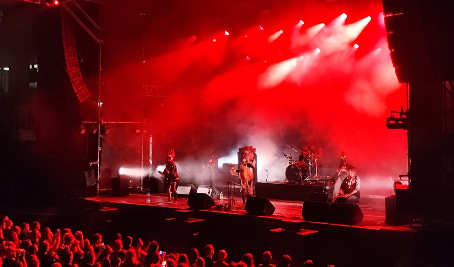 Auch bei der zweiten Band fällt die musikalische Einordnung schwer, Rock, der ja eigentlich leichter zu spielen wäre, ist das nicht. Heavy Metal? Hardrock? Drei Gitarristinnen, die wirklich viel spielen, dazu eine zerbrechliche, sehnsuchtsvolle Stimme. »Please show yourself« und immer wieder »I wish« – aber was? »You seem so far away. I wish ??« Jubel brandet auf, überhaupt ist das Publikum irrsinnig nett und geht voll mit. Beim folgenden Rap greift eine zweite Sängerin ein, sie singen zu zweit, eine rechts, eine links – voll Stereo. Und dann kommt der Satz, der mich als verhinderte Schlagzeugerin (ich habe meine Tama Royalstar-Drums Sunita von »Bloody Mary« geschenkt, als die aus Bosnien geflüchtet kam und kann nun selber nicht mehr üben) entsetzt: »Sie spielt, als ob sie schon immer Schlagzeug gespielt hätte, dabei spielt sie erst seit drei Tagen!« Wie ist das möglich? Eine musste eben ans Schlagzeug und Coach Sushi erreichte nicht nur, dass sich das eine zutraut, sondern dass sie die Vierer-Partie mit allen Extremitäten auch technisch unter einen Hut bringt. Das macht mich fertig. Vor allem, als dann auch noch ein Suffragetten-Lied kommt, die junge Frau auf der Bühne erläutert, wer die Suffragetten waren und keine im Raum weiß, dass unsere Frauen- bzw. Mädchenband Mitte der 1980er Jahre Die Suffragetten hieß. Manchmal wünsche ich mir mehr generationenübergreifende Informationen im Feminismus. ?ber mittlerweile mehrere Generationen hinweg. Auf der Bühne schreit inzwischen eine urlaut, lässt ihre roten langen Haare kreisen und kriegt viel Applaus. »Meine Tochter hat hier im Camp das erste Mal E-Gitarre gespielt. Aber Bühnenerfahrung hatte sie schon als Tänzerin. Das macht viel aus«, sagt ein stolzer Vater, der aber mit den Nerven fertig ist vor lauter Aufregung. Seine coole, blonde, 14-jährige Tochter auf der Bühne ließ sich nur einmal zu einem Lächeln hinreißen. Eine Mutter säuft sich an.