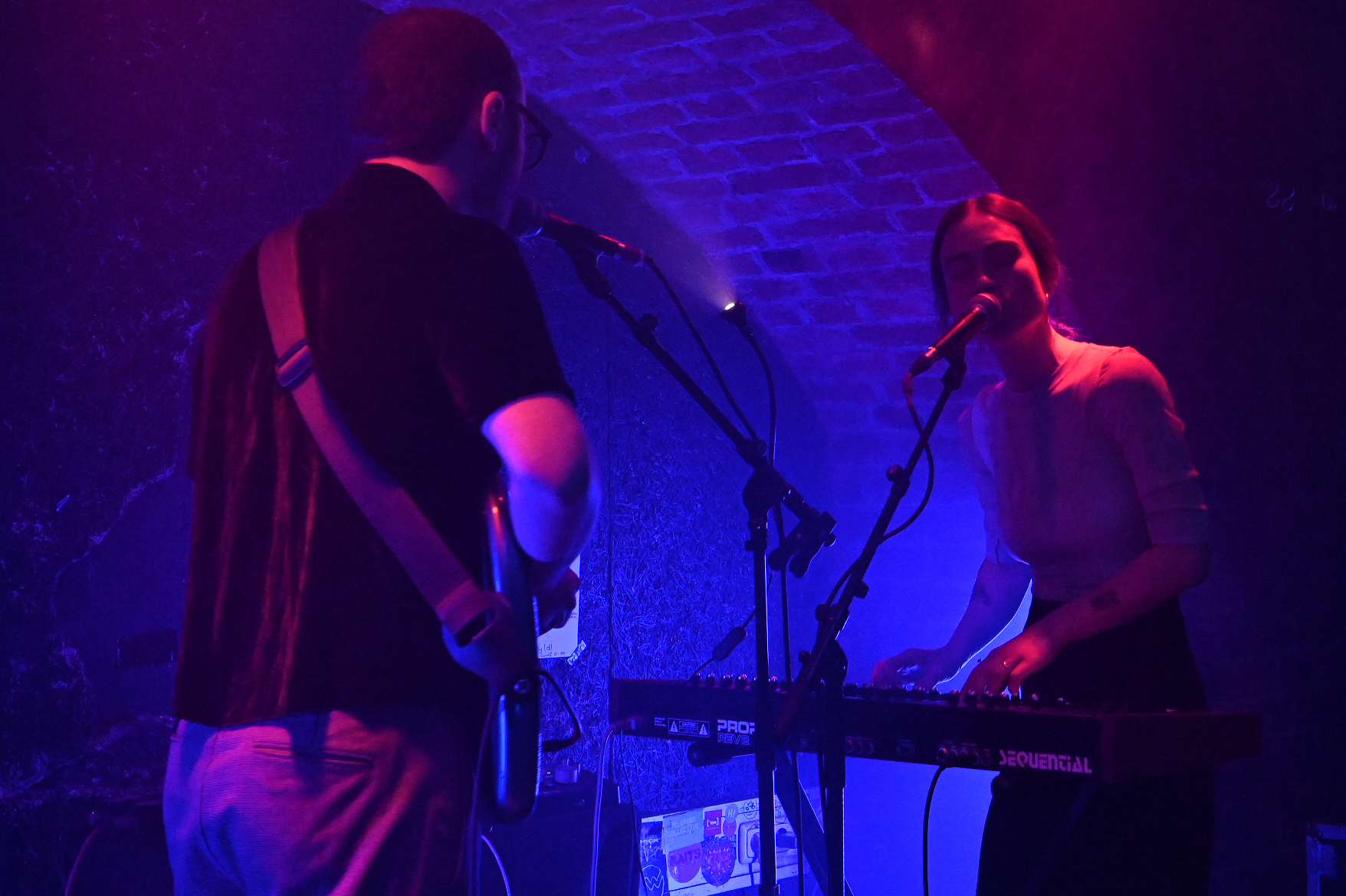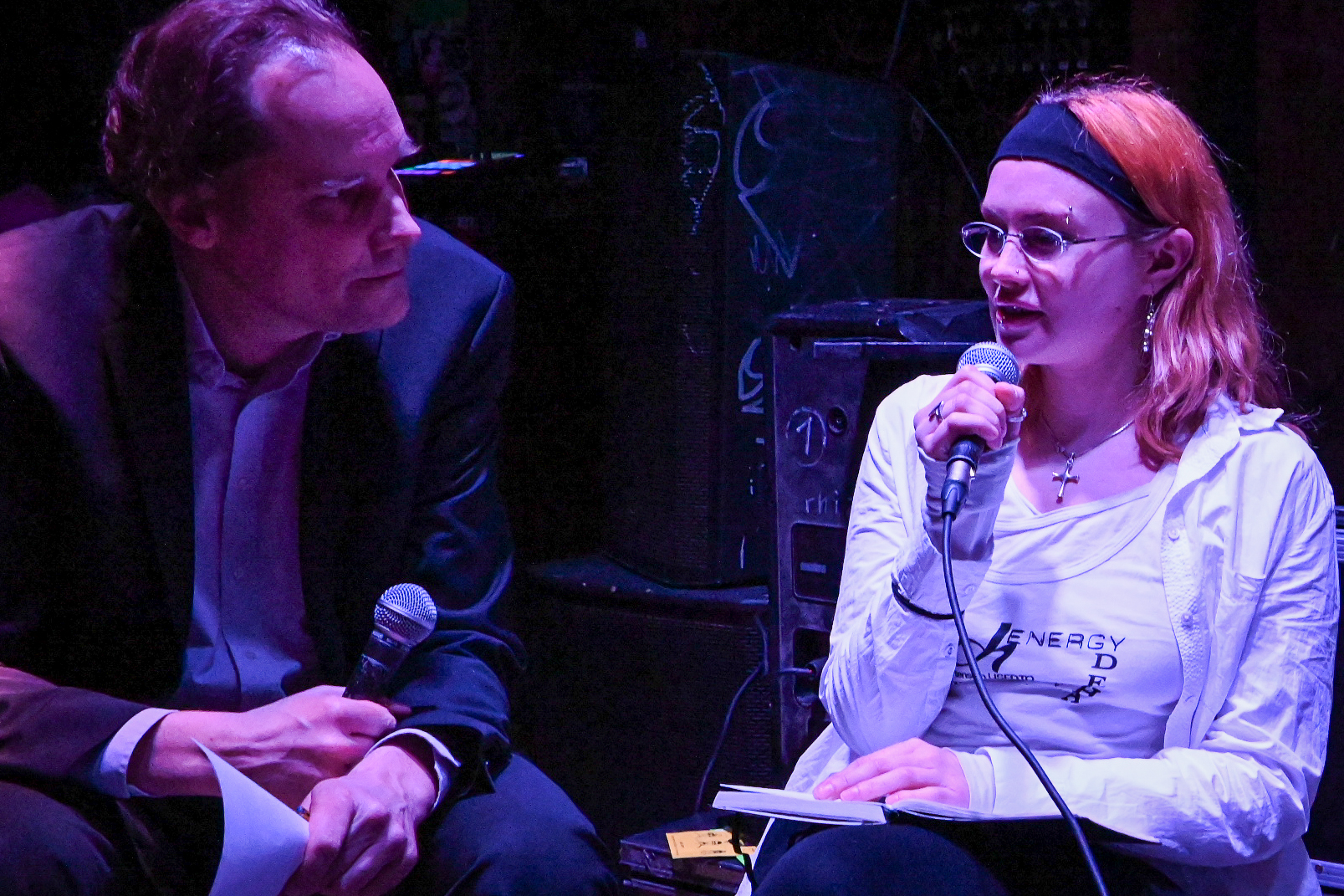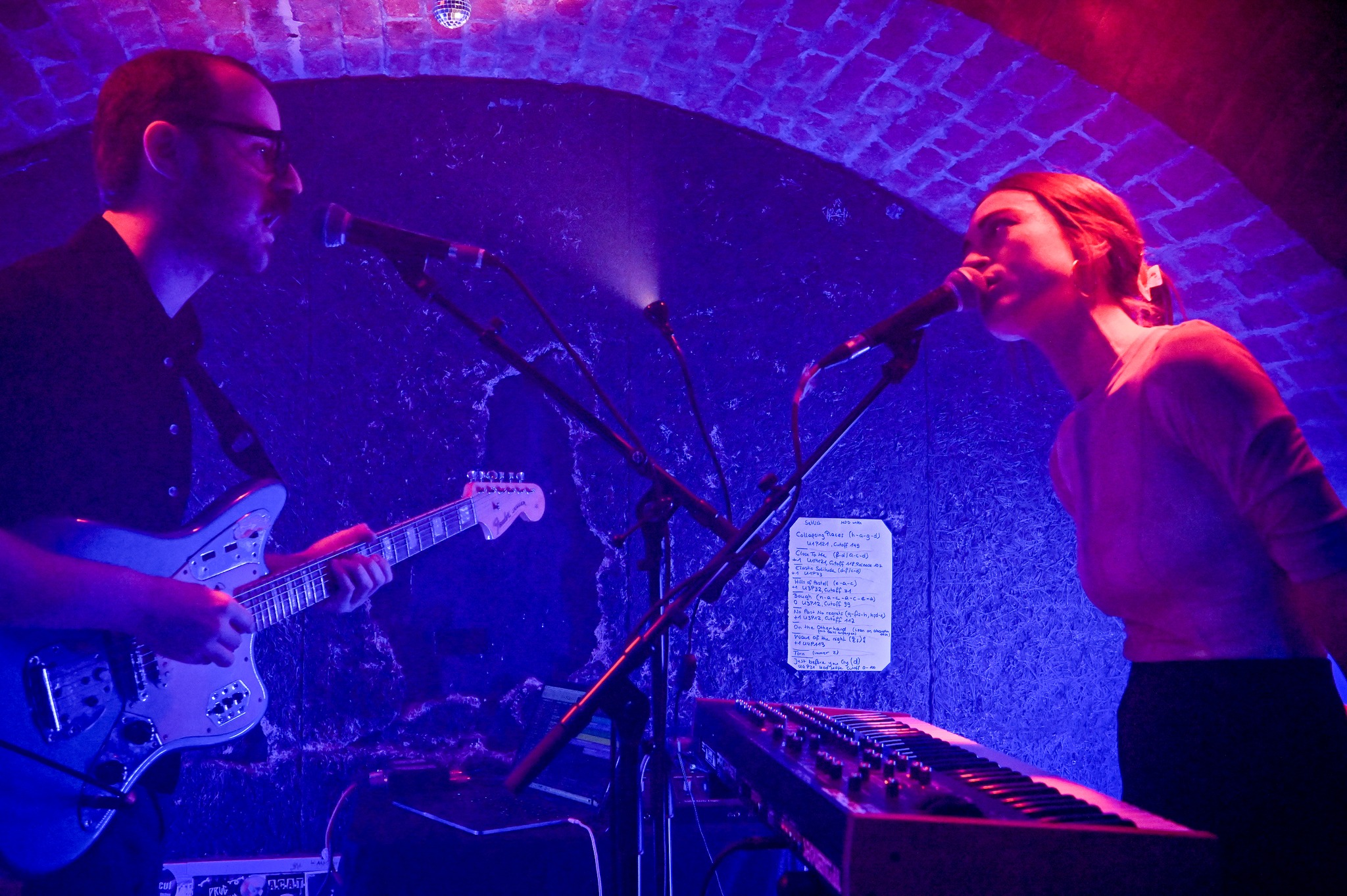 Und jetzt zur Musik. Eine der Aufgaben des Salon skug liegt bekanntlich darin, Bands erstmals auf die Bühne zu bitten, die sonst damit zu lange gewartet hätten. Überglücklich durften wir nach dem skug Talk Nora Blöchl mit dunkeldarken Waves begrüßen. Ihre Sounds sind verträumt schön wie einst Ian Curtis’ Spieldose. Ihr Gesang, die Rhythmen, die Texte bilden eine gut verzahnte Mischung, die mit echter Nachrichtenansagerinnenstimme aus dem Synthesizer komplettiert wird. Perfekt. Hier unbedingt nachhören:
