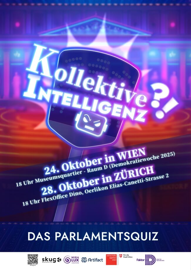 Am 24. Oktober 2025 sehen wir uns deshalb zu einer neuen Spielrunde »Kollektiver Intelligenz« und zum Vernetzen, um gemeinsame Kämpfe für eine funktionierende Demokratie zu organisieren. Wir freuen uns auf euch!