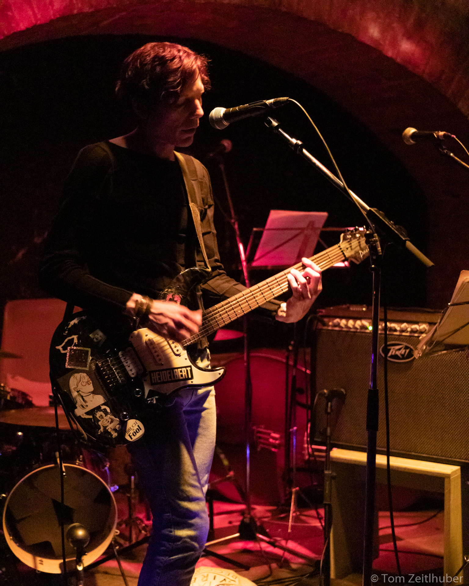 Außerdem hörten wir ein Konzert von Rico Mynthen. Der ist Linzer Dazed Pilot und brachte seine neue Soloschrammelplatte mit. »Darksoulige Vibes« hat das irgendwer genannt. Na ja, kann man ja selbst entscheiden!