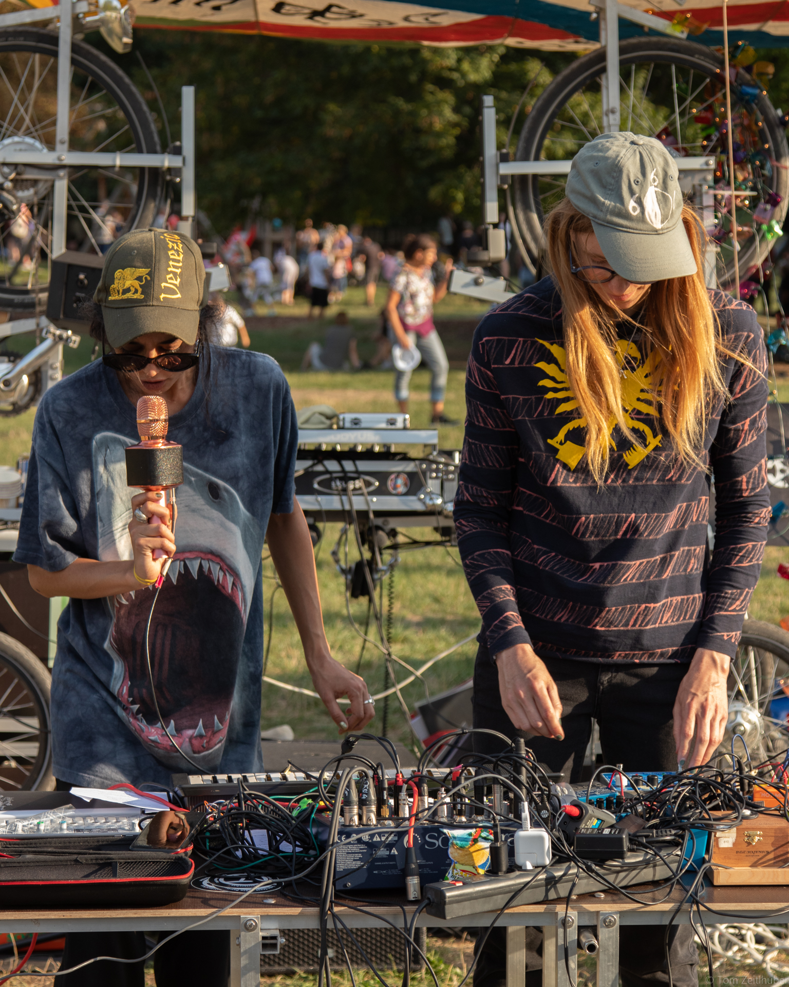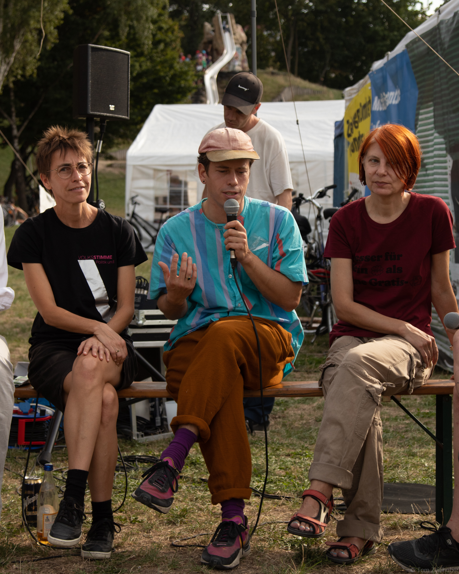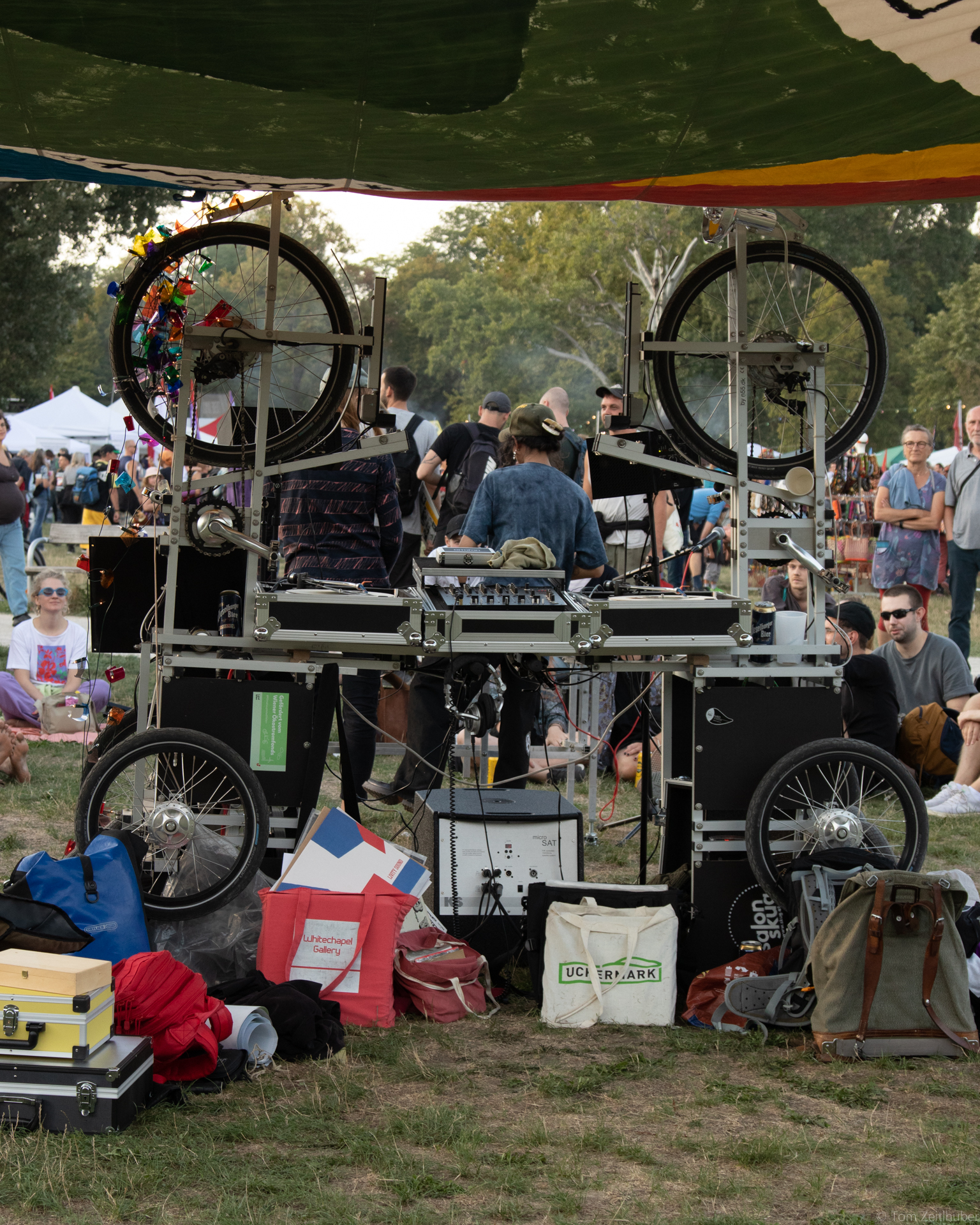 Der Salon skug auf Rädern ist bekanntlich eine mobile Veranstaltungsplattform, die an öffentliche Orte der Stadt jenen Sound und jene Debatte bringt, die dort nicht unbedingt erwartet werden. Dies zur Freude der Passant*innen (und meist auch der Anwohner*innen). Auf dem ohnehin schon ausgezeichnet besetzten Volksstimmefest mit seinen sorgfältig und gut kuratierten Live-Shows haben wir ein Eckchen am Ende kurz vor Waldesrand bezogen und dort ein bisschen Sounds ausgesät, die die einen oder anderen Besucher*innen zu einem »Aha, okay, das also auch noch« verleitet haben. So ist das eben beim letzten Stand ganz links. Wir liefern mit Freuden und kommen nächstes Jahr gerne wieder. Wer es verpasst hat, hier zumindest die Fotostrecke zum Schwelgen.