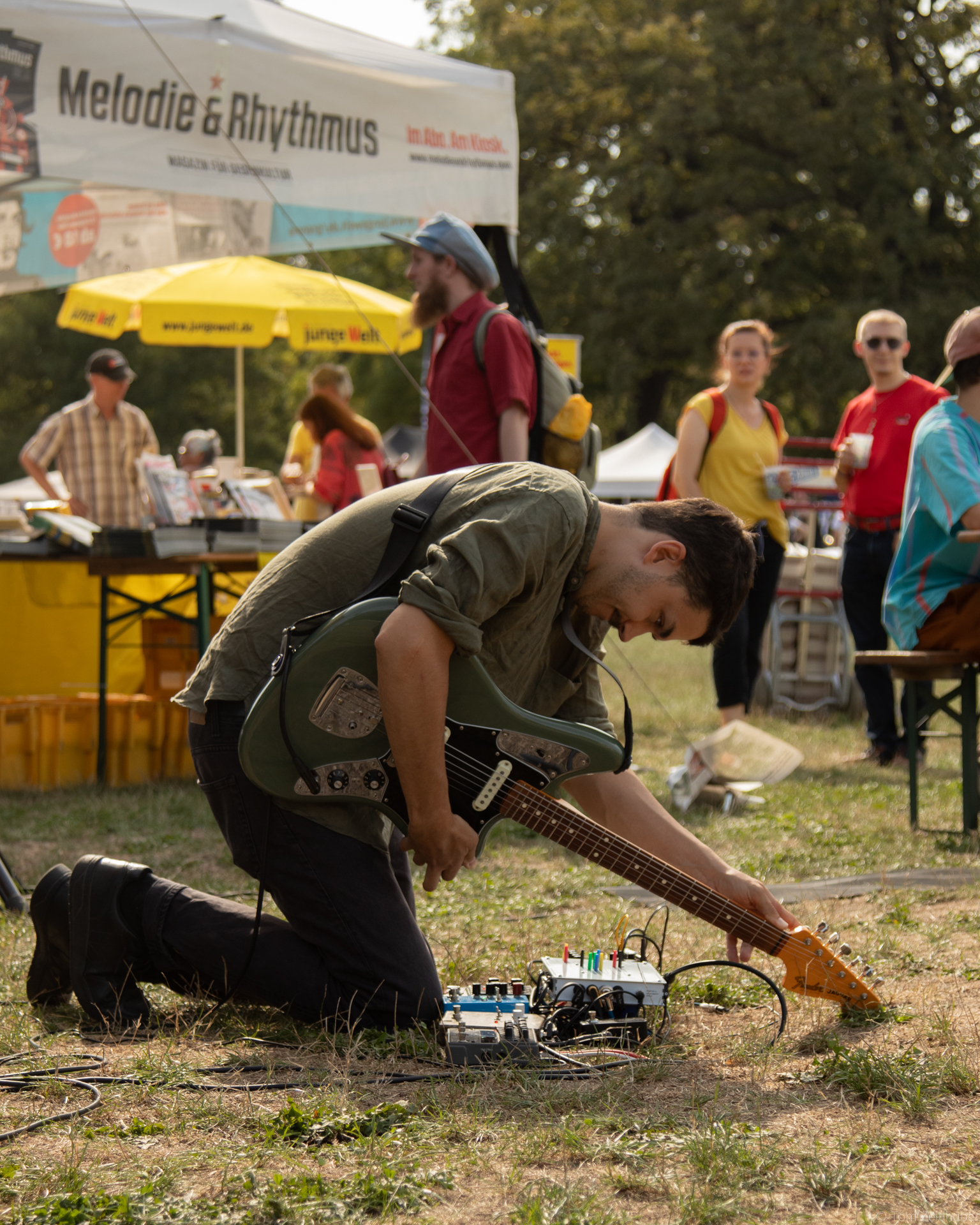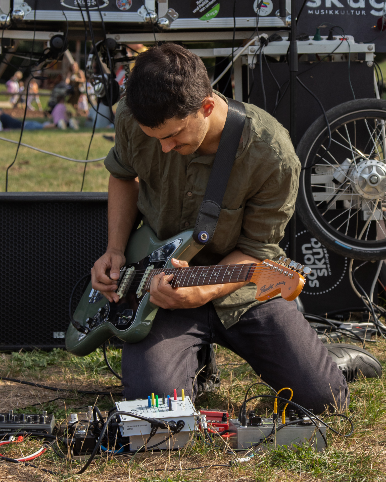 Wenn Volksstimmefest ist, weiß man, der Sommer ist bald erledigt. Der anstehende Winter wird – vorsichtig formuliert – einer mit gewissen Unwägbarkeiten und Herausforderungen. Wie wichtig war es da, es beim Salon skug am 3. September 2022 auf der Jesuitenwiese noch einmal gewaltig scheppern zu lassen und der dunkler werdenden Welt zu zeigen: Wir bohren unsere Gitarrenhälse in den Grund und streuen Synthesizer-Seeds, damit da Neues wächst! Wie das klingt? Einfach mal reinhören bei der wunderbaren Live-Show von Winkelschleifer und MIRCO MATA, hier exklusiv online.