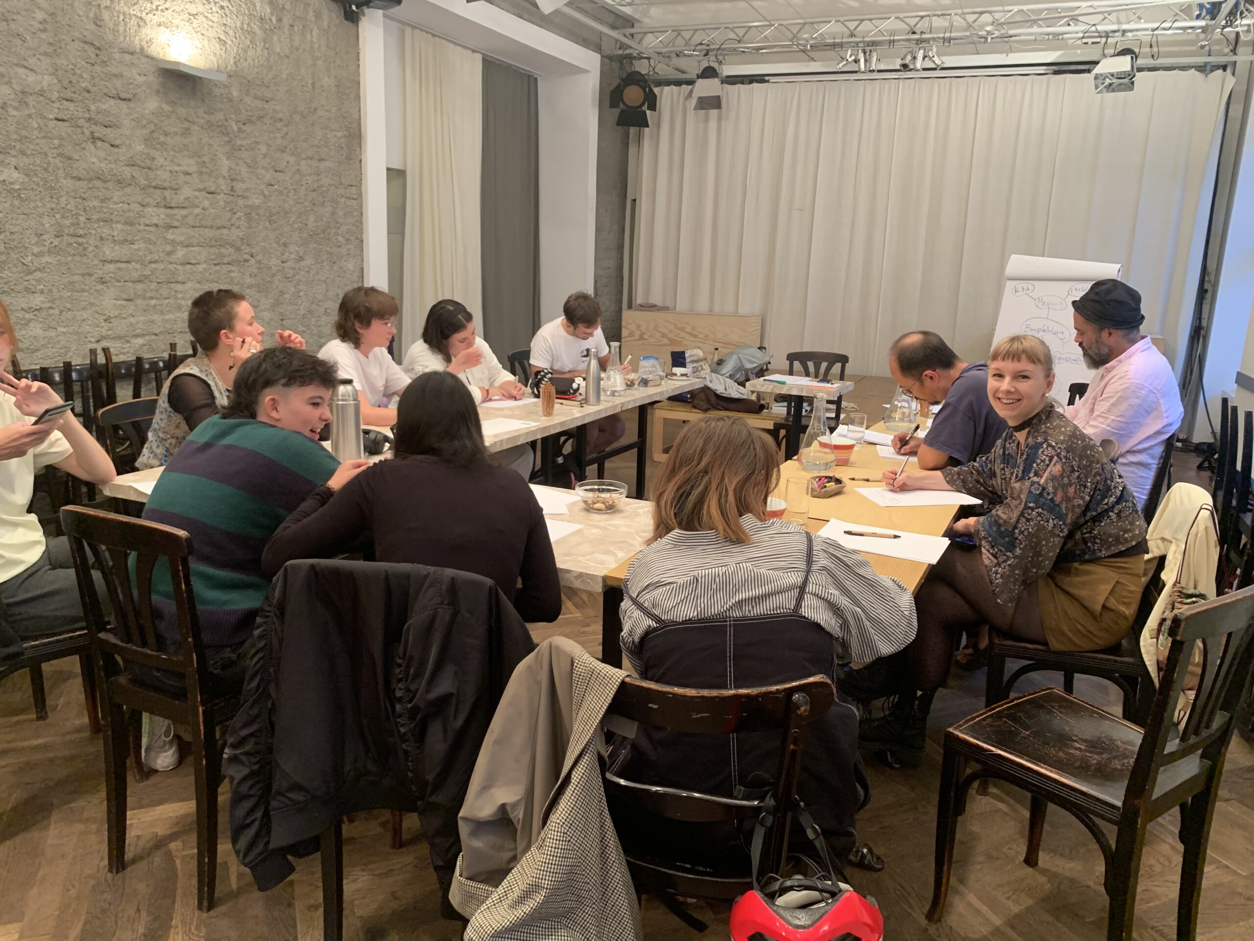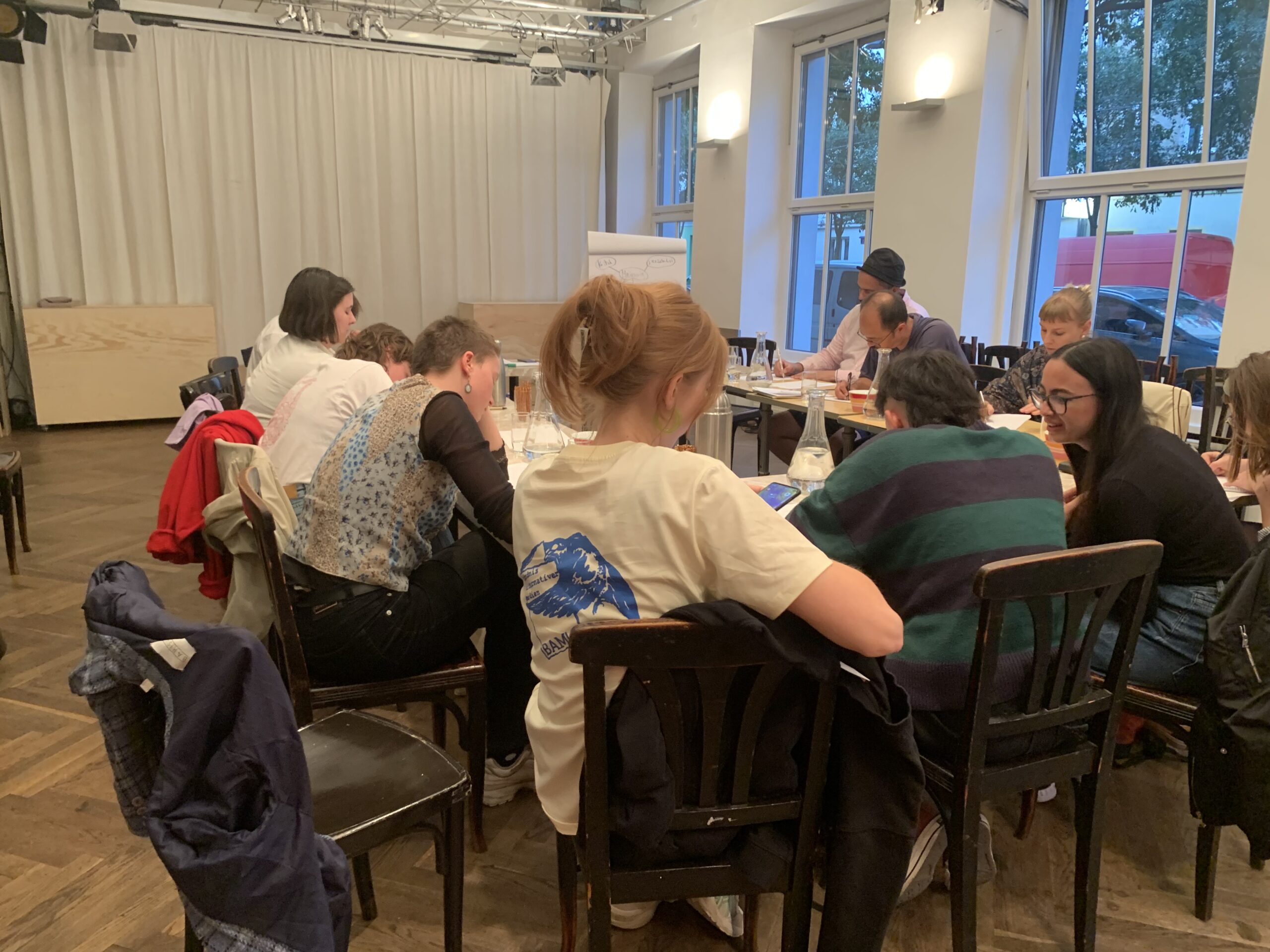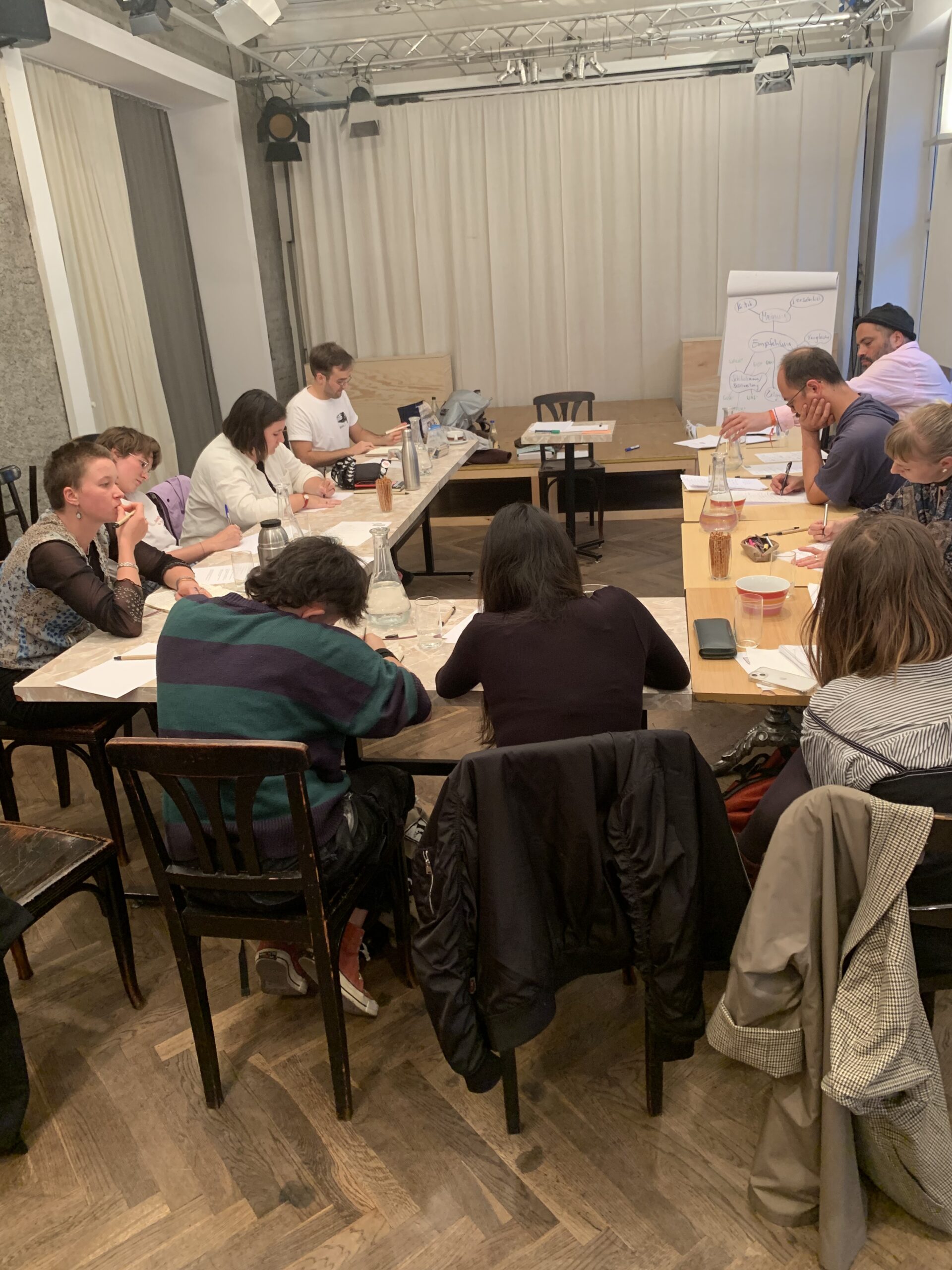 Knapp vier Wochen später, am 29. September 2023, trafen wir uns im t/abor im 2. Bezirk wieder, wo es direkt damit weiterging, wie man überhaupt zu einer Idee kommt. Unter der Überschrift »Brainstorming – Drei Techniken« stellten wir dazu unterschiedliche Methoden vor, die helfen sollen, den Keim einer Idee zum Blühen zu bringen. Und auch hier ist für jede*n etwas dabei: Egal ob visuell oder assoziativ, alle Gedanken sind wertvoll! Denn es stehen uns oft akademische oder schulisch gelernte Strukturen im Weg und die müssen wir manchmal einfach über Bord werfen!