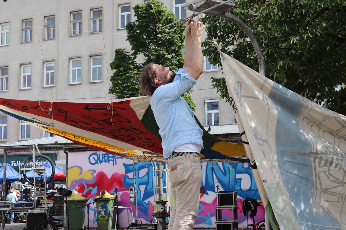 Der nächste Schritt wird dann etwas komplizierter. Denn wie sind diese Bedürfnisse am besten zu stillen? Auto, Flugzeug, Hüpfstange? Gemeinsam mit unserem schlauen und vorbildlichen Kooperationspartner Zukunftsrat Verkehr luden wir deshalb zum Gespräch über den sicheren Verkehr und wie dieser Teil eines ökologischen und demokratischen Raumes sein kann. Das Ganze geschah vor künstlerisch sorgfältig gestalteter Kulisse. Wer nicht dabei sein konnte, hier die Bilderstrecke zum Schwelgen: