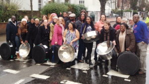 Mathias Polednas ,swinging donkey, Jeremy Dellers, steel artist – film art, that concentrates of its own music creation. How is it possible to play so melodiously with metal drums? To create such a broad band of sounds? In the British pavilion at the Art section of the Venice Biennale the »Melodians Steel Orchestra« took the prize. An enchanted, subjective »Prolo Schlagzeug« column from the skug.at series.