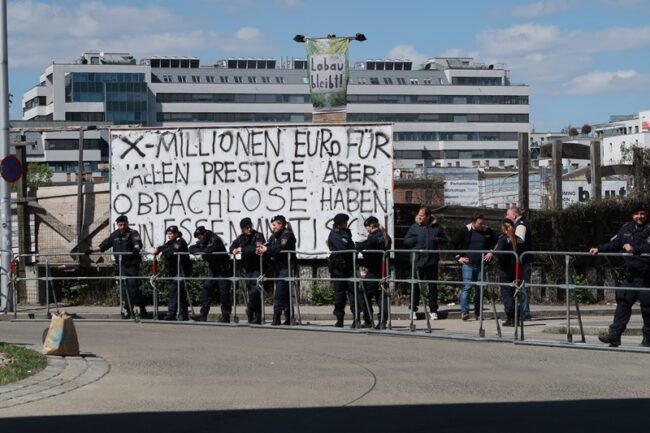 Bis Februar 2026 hatte St. Marx für Alle! einen Vertrag zur Zwischennutzung. Nach dessen Auslaufen war ein Verbleib auf dem Areal juristisch gesehen wohl eine Besetzung. Die Aktivist*innen gingen nicht. Die Brisanz der Lage war für sie mit freiem Auge nicht zu erkennen. Das Bauvorhaben, auf dem Areal eine superduper Eventhalle zu errichten, war zuletzt eher in weitere Ferne gerückt. Der Investor zögerte trotz versprochener Millionensubventionen. Das ist sicherlich auch der Weltlage, der Energiekrise und der zu befürchtenden weltweiten Rezession geschuldet. Viele haben gerade anderes im Kopf, als ein Flugzeug nach Wien zu besteigen, um dort einen jener internationalen Mega-Acts zu beglotzen, für die die Halle in St. Marx gebaut werden soll. Im Rathaus wurde bereits über andere Nutzungen des Areals spekuliert. Warum dann nicht einfach St. Marx für Alle! noch etwas stehen lassen?