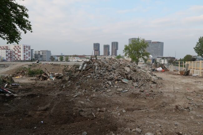 Ein weiteres Detail, das füglich zur Beschreibung der Widersprüchlichkeit der Stadt passt. Man will Nachhaltigkeit – den Worten nach – und dann zerschlägt man gut genutzte Strukturen, nur damit ein Stück Land frei wird fürs große Betonieren, das dann noch Jahre (vielleicht Jahrzehnte) auf sich warten lässt. Dieser Nebenwiderspruch steht in enger Verbindung zum Hauptwiderspruch, nämlich dass man sich von Bürger*innen Initiative und Beteiligung erwünscht, die dann buchstäblich zubetoniert wird. Die beißenden Fragen sind: Wieso ist hier die Vermittlung so drastisch gescheitert? Sind die Aktivist*innen kategorisch gegen den Bau einer Eventhalle oder hätte die Stadt mit ihnen Wege zu einer gemeinsamen Nutzung des Geländes finden können? Warum gilt es für die Stadt so wenig, dass ein Gelände gemeinschaftlich und aktiv genutzt wird?