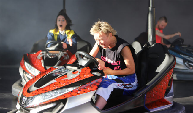 Im Super Autodrom im Wiener Prater präsentierten die Performer*innen von Andother Stage gemeinsam mit Autor Kilian Jörg mit »Autodestruct me, baby!« am 9. Juli 2025 eine Show, die zum Ineinanderkrachen einlädt.